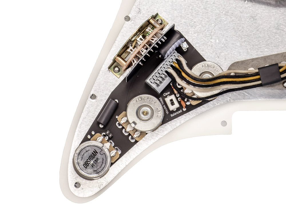 Tous Obsidienne ® Pro-Wired  L'électronique est extrêmement facile à installer et permet de changer les micros sans soudure grâce à Obsidian® . Connecteurs Plug, Play et Enjoy .
